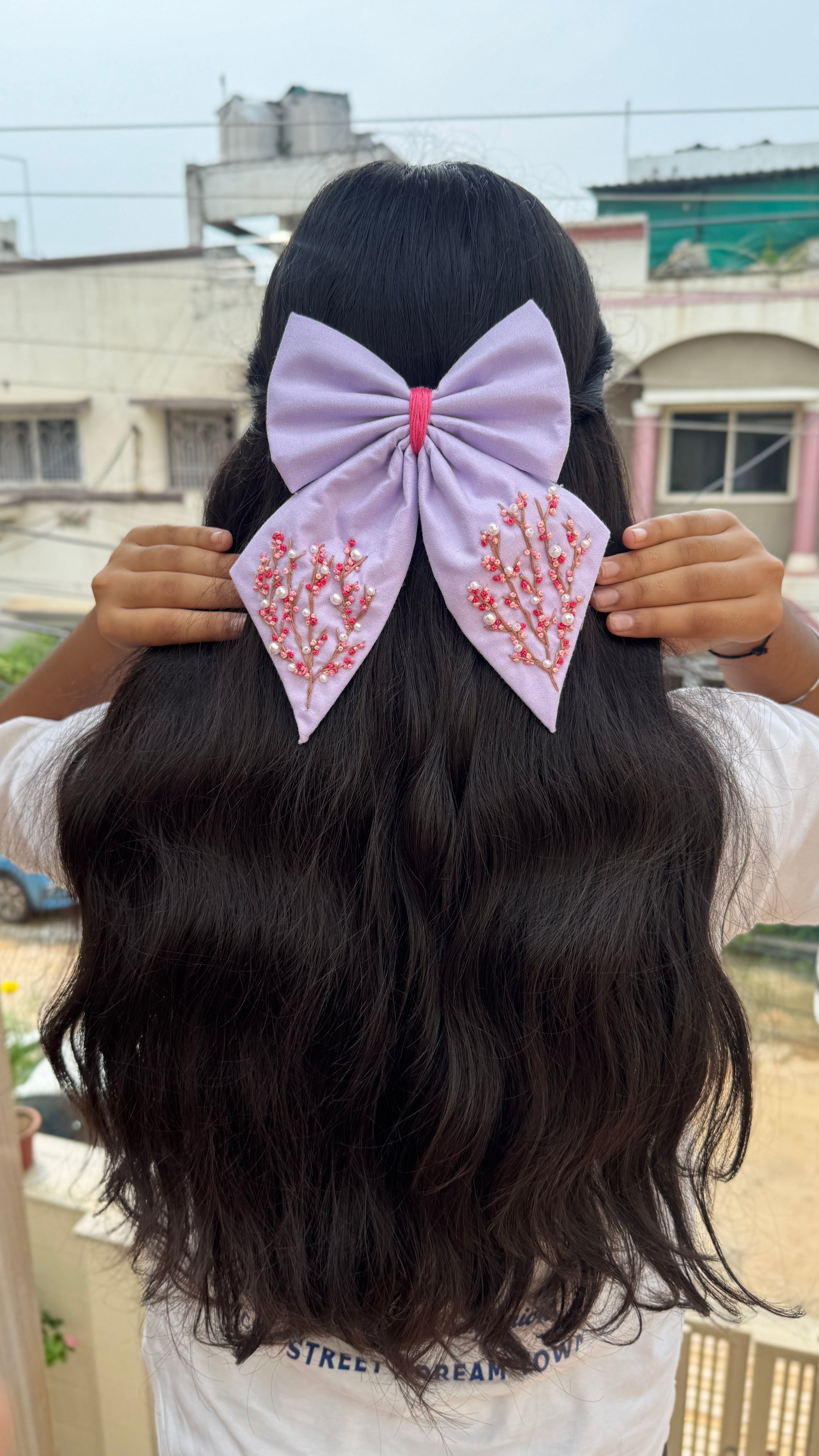 Lavender Embroidery Bow