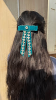 • A strong alligator clip attached on the right side ensures secure placement and easy styling.