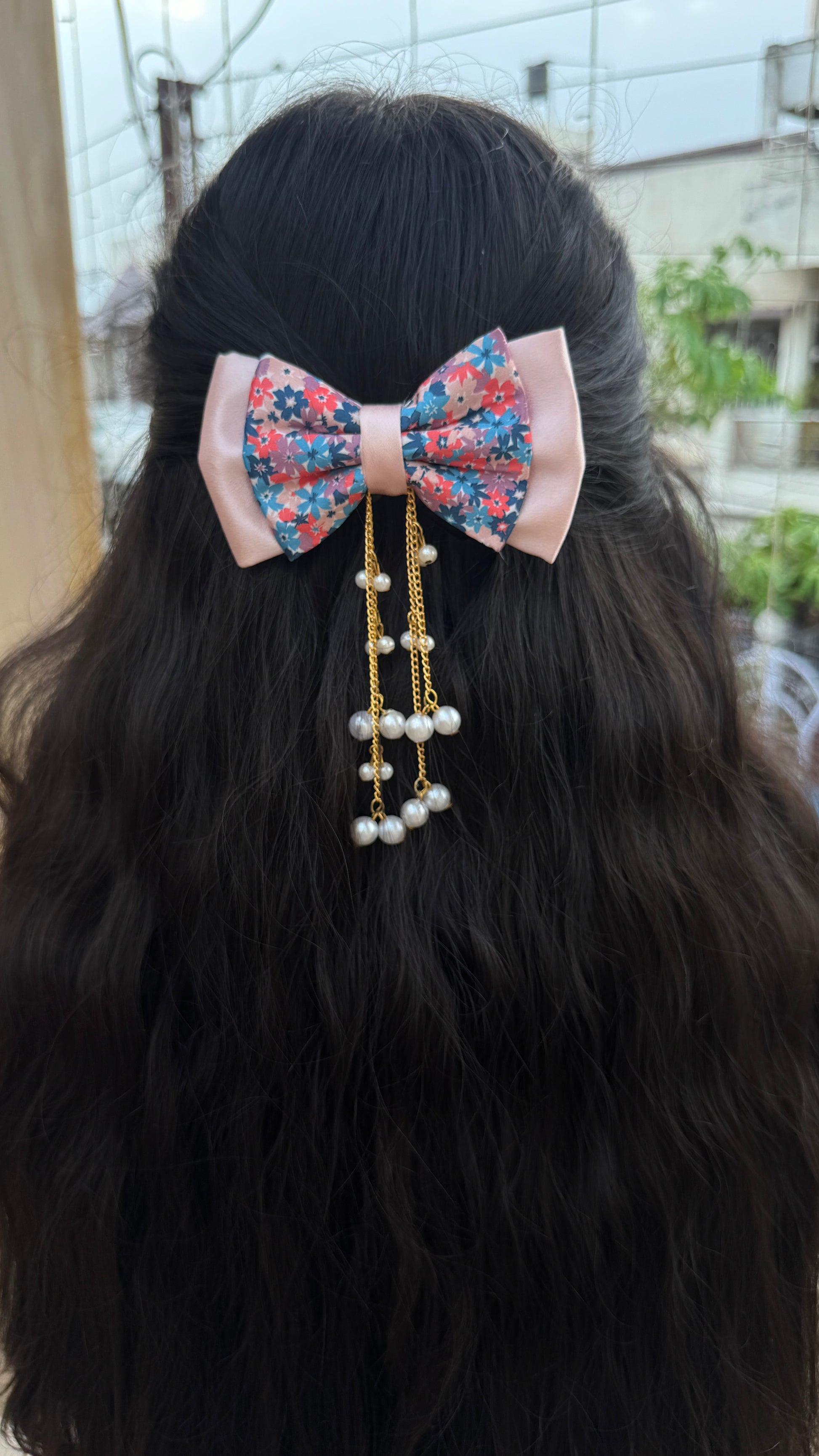 • These beautiful bows feature with high quality pearls & chain for a luxurious finish.