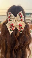 Rosy Elegance Embroidery Bow
