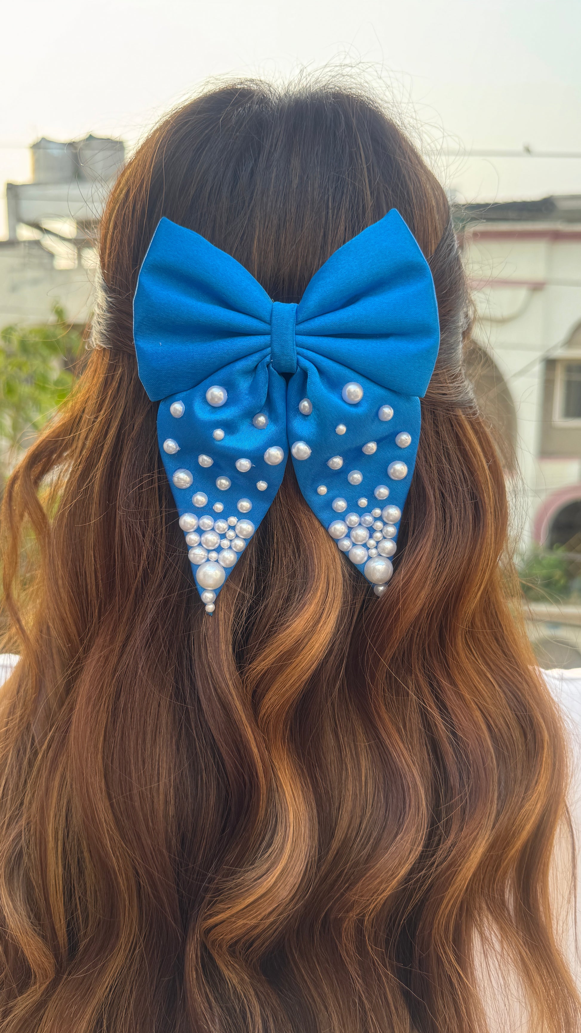 Royal Blue Pigtail Pearl Bow