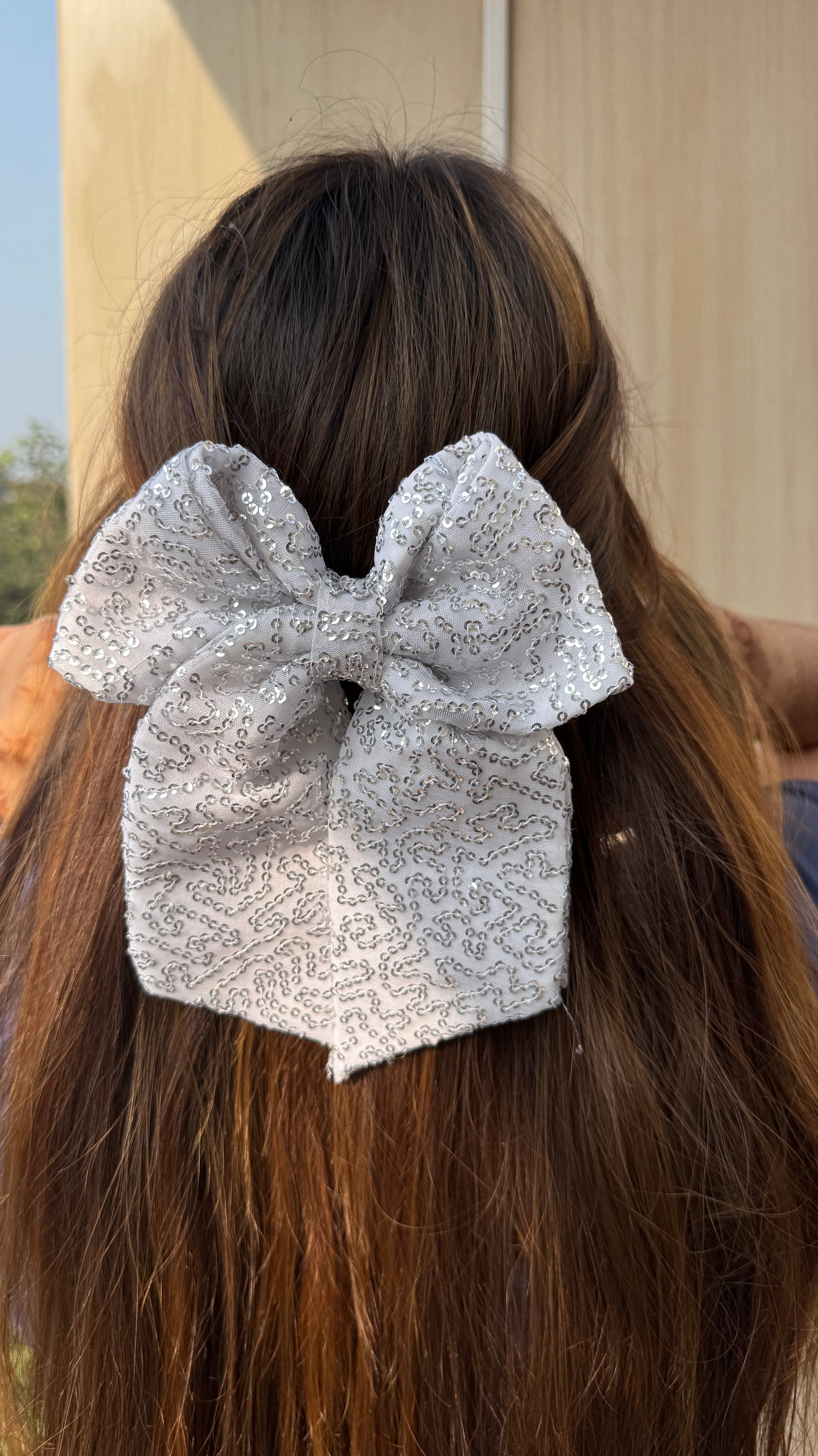 - Bring some sparkle to your everyday outfit with this handmade, sequin shimmer bow.