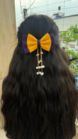 Yellow purple hanging pearl bow